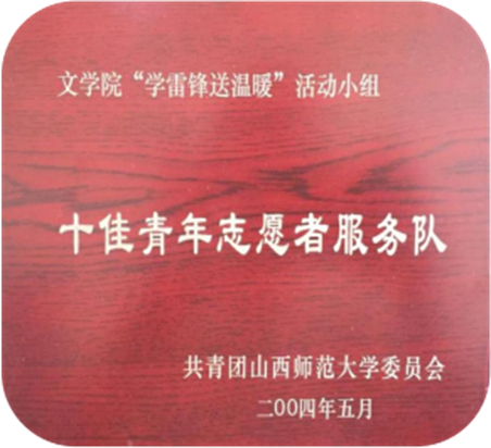 2012年5月,“学雷锋,送温暖”小组荣获共青团山西省委员会“十佳青年志愿者服务队”。