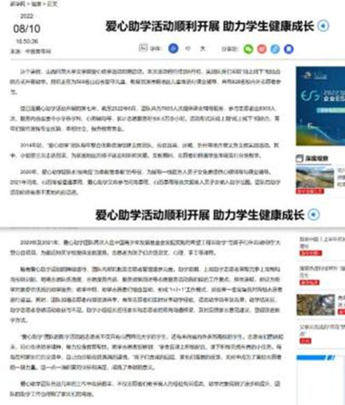 2022年8月1日,刊登文章《山西学子三下乡:爱心助学行,夏日暖童心》。