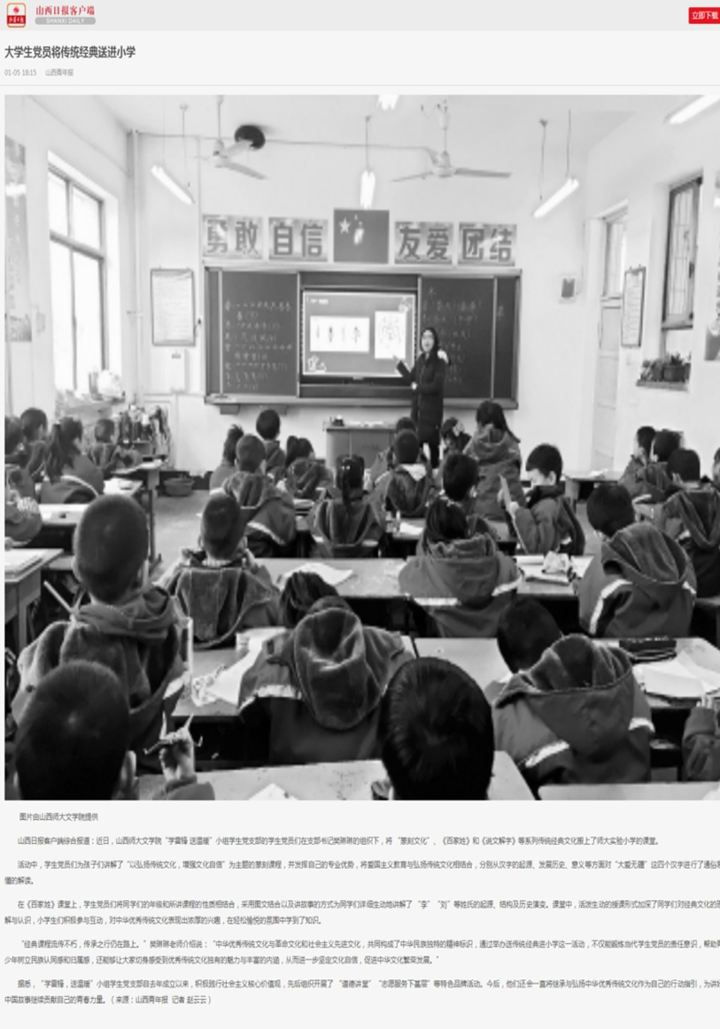 2018年1月5日,刊登文章《大学生党员将传统经典送进小学》。